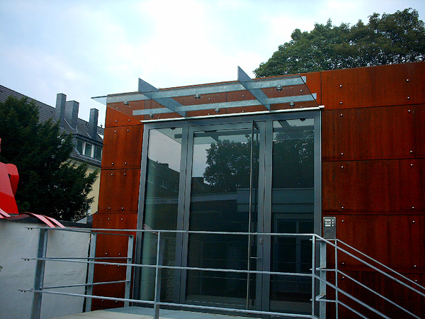 Neubau eines Architekturbüros aus Stahl, Aluminium und Glas. Dies ist ein Paradebeispiel für mehrere verschiedene Leistungen in einem Objekt.